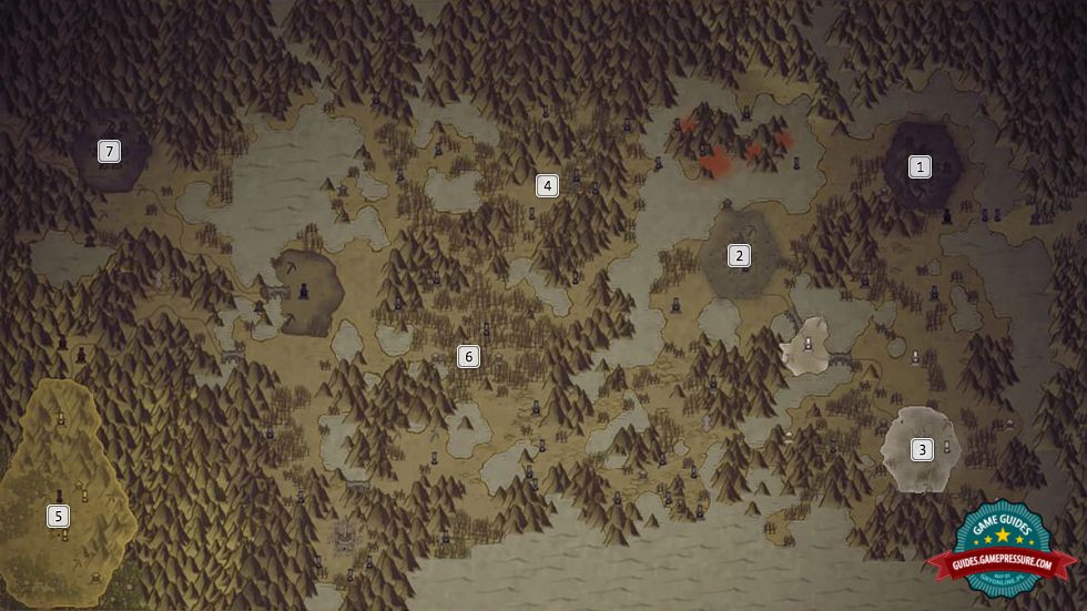 You start off in the Eastern end of the map. Start by capturing the city in [1] and include it in your empire; then deal with [2]. In [3] you will find the Throne City of the, initially, independent player (Tannah). The most important descent into the undergrounds is in [4]. After you have retrieved the gem, go to the allied settlement [5].