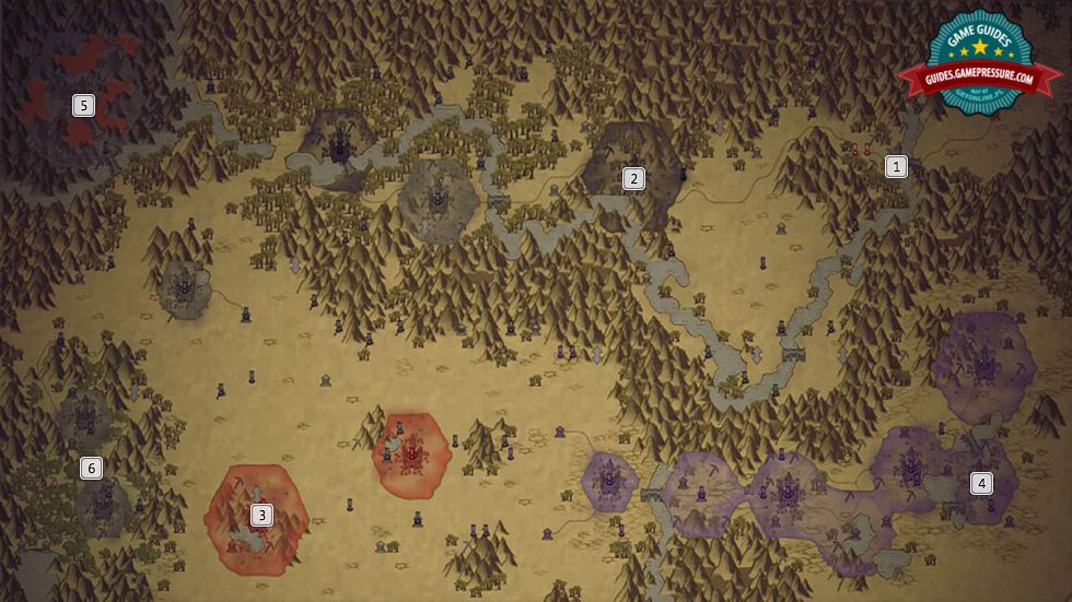 You start in the Eastern end of the map, where you can found your first city nearby [1]. As you go West, you will find locations connected with side missions [5] and [6]. then, in a wavy line, go to [3], [4] where you find enemy Throne Cities.