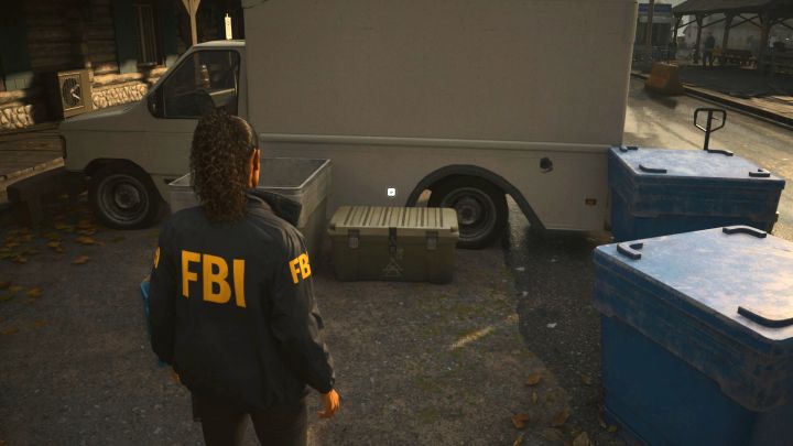 - Walk a bit to the west. The container is initially behind a white van, and you have to go around it from the other side.