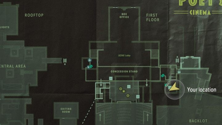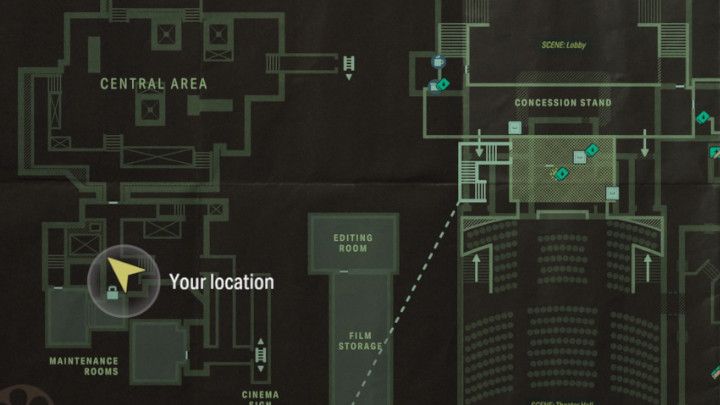 After entering the cinema, go to the toilet located to the left of the entrance. Inside you will find a door leading to the service room. Look at the ceiling. The Word of Power will be painted in the corner of the room.