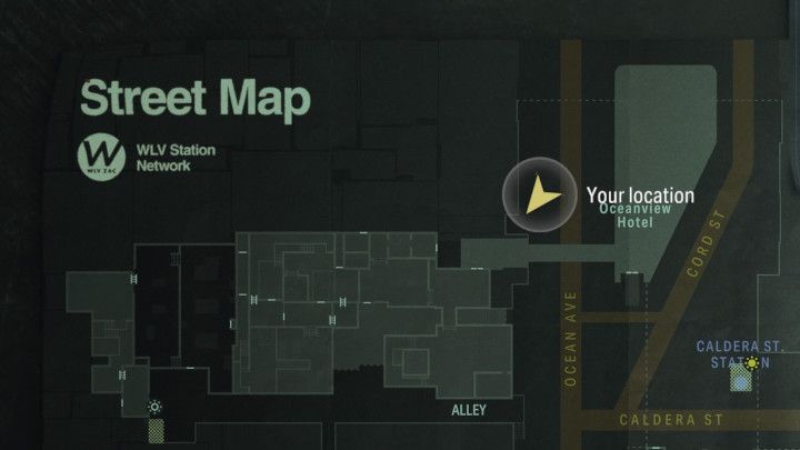 Once you're back in the streets of the dark version of New York, head to the north end of Ocean Ave. With the Hotel on your left, look at the wall of the building on your right. You will find the next Word of Power painted on it.