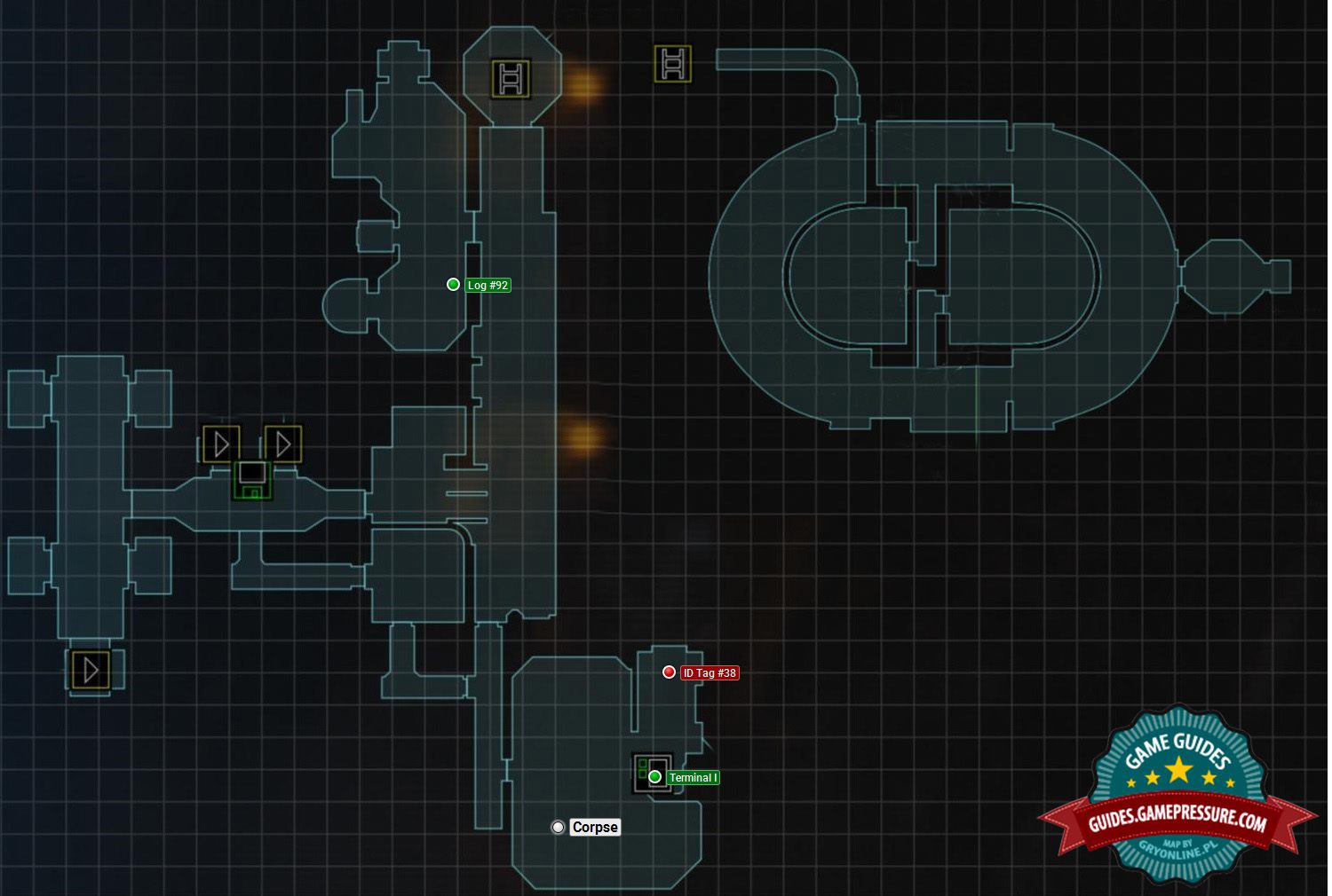 A corpse with a keycard to the room where you'll find log #92 (the corpse is on the pool table)