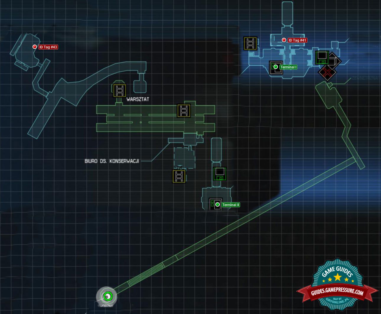An ID Tag lies on the desk in the middle of the room (between the two consoles you have to hack)