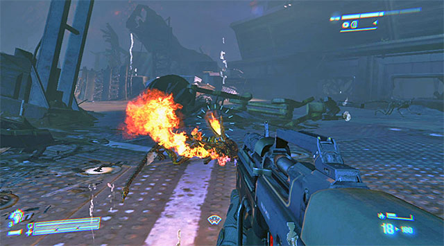 The task is simpler that it may seem at first, because the Xenomorphs will be much more interested in attacking the main character and O'Neal instead of Reid working at the comm tower. Since they show up in packs, I recommend using explosives more often than usual. It's also good to shoot them from a greater distance, especially given that they'll only be coming from one direction.