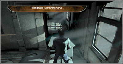 Ignore the message about the possibility of picking up certain items. None of these objects is useful to you at the moment. Proceed to the left corridor. A small desk is blocking your path (screen). Approach this object and press the action key. Start pulling the desk towards you. Leave this object somewhere nearby and head on to a new room.