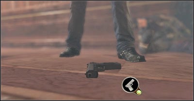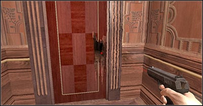 Keep moving forward until you've reached a closed door. Switch to FPP view and aim your newly acquired weapon at the lock. Fire a single bullet (screen) and you should be able to get inside. Witness a very interesting cut-scene. Thankfully, you won't have to worry about your character losing his life.