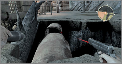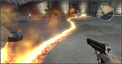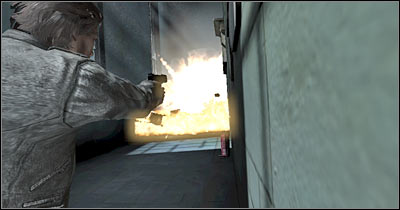 Once you've reached a new area, you should receive a call from Sarah. It looks like she's in serious trouble, however you can't help her right now. Go to your right (screen). You will find a lot of interesting items here, so it would be a good idea to look around. Take at least one explosive bottle and choose it right away. Pick a pistol for your other hand.