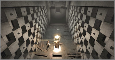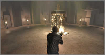Now you'll have to go through a rather complicated maze. You can use your burning object to light the way. You should also know that you won't have much time to get to the other side, because the roof is collapsing. Notice that you can slow down this process by interacting with some of the beams (screen). Here's the correct route to the exit: turn right, left, left, right, right, right, left, right, left, left and finally right. You can't make any mistakes, because you wouldn't have enough time to get back on track.