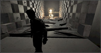 Make sure that you're carrying the torch and proceed towards a small dark corridor. Head on to the opposite end of the corridor and read a message. Start going back, however move slowly. Be on a look out for an area where it's windy. You can notice that by looking at the torch (screen). Drop the torch here and go back to the main room.