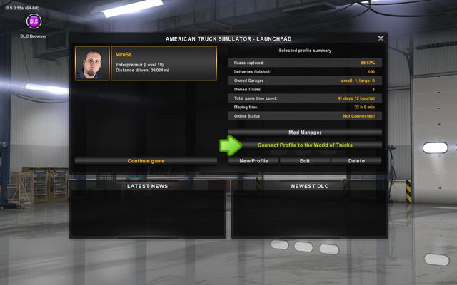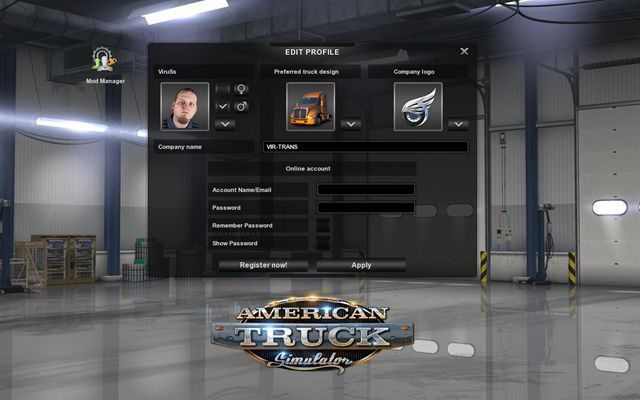 To connect your account with an online account, you must press the "Connect profile to the World of Trucks" button at the character select screen. Before you do it, first you should create your account on www.worldoftrucks.com using your browser. When you're there, click on "JOIN NOW" and register your account. Now you must complete a simple registration form. Remember to complete it following the manual available on the website.