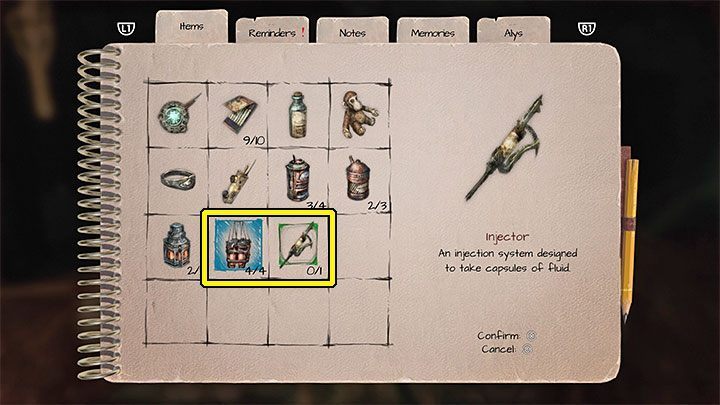 Open your inventory, select the capsules and choose combine items - you have to connect the capsules with the injector (example in the picture above). The idea is to fill the injector with a substance from one of the capsules.