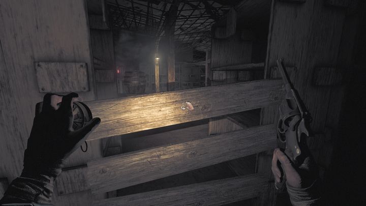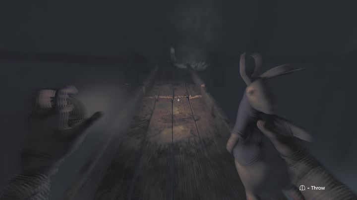 If you've chosen the second option, the rabbit toy will be very useful. You can stand at the end of one of the wooden bridges and throw the item directly into its middle. As the Beast heads towards you, it will notice the toy, becoming inactive for a few seconds. This is a great moment to attack with your firearms (revolver or shotgun) and fire at the wooden bridge, which will collapse. Thanks to this, the monster will fall into the abyss, while you can safely proceed to the exit and complete the game.