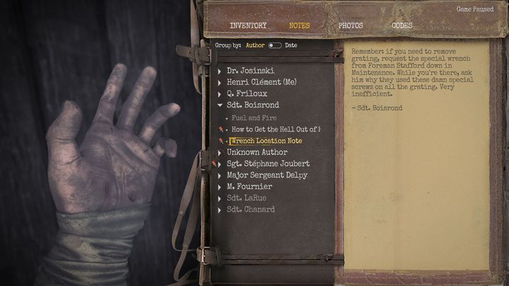 - Return to the Security Room. Inside the room, you'll find a note that shows where the key is. The surname of the soldier in possession of it is random, so read the note carefully and look for the bed with a name that appears on the note. It could be in Barracks A or B.