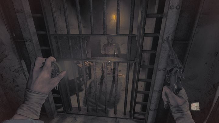 Further ahead, you'll encounter a steel door that cannot be opened through brute force, leading to Warden's Office. Only way in is going around and opening a grate. However, you can't do it without the Wrench. Even more further ahead, you'll reach a cell block and a German soldier who is imprisoned in one of them. There are Bolt Cutters next to him, an item that will allow you to cut through chains in other locations. Unfortunately, to access the cell, you first need to find the aforementioned Wrench with which you'll be able to access the Warden's Office.