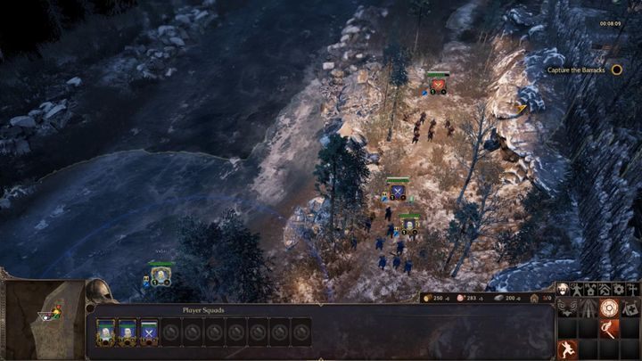- Your new objective is to defend this settlement until morning - this is a rather difficult thing to do. Fully upgrade two squads of shieldbearers. Then, you have to place them in the gate and set defensive formation. Enemies can't go around them, and these units can defend themselves for a long time.