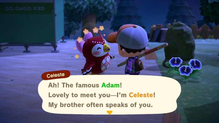 Celeste is the sister of the museum owner Blathers, and also a big astronomy fan. She will appear on your island shortly after you build a museum and teach your hero how to get fragments of shooting stars - we wrote more about it here.