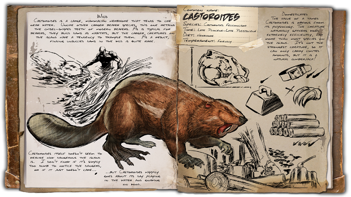 Stunning | Castoroides on 1/20/50/100 level will be stunned with: 35/75/138/243 - hits from a wooden club 15/31/57/100 - hits from a slingshot 4/9/16/27 - hits from a bow + tranquillizer arrow 3/5/9/16 - hits from a crossbow + tranquilizer arrow 2/4/7/11 - hits from a longneck rifle + tranquilizer dart |