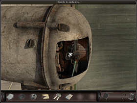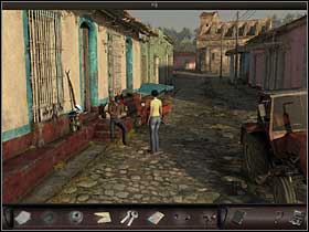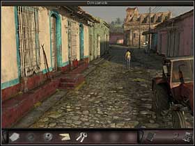 She meets Manuel again, this time disassembling an engine and agrees to give Nicole the engine brushes as a present. She also notices quite an impressive staff standing next to the wall. It could be of some use... Miss agent heads back to the shaman's house and tries replacing the brushes, by they prove to wide. She goes back to talk to Manuel about her problem. She asks him about the belt, but he's not willing to give it to her. He is also reluctant to borrow her the staff, but finally agrees when she promises to bring him a guanabana fruit.