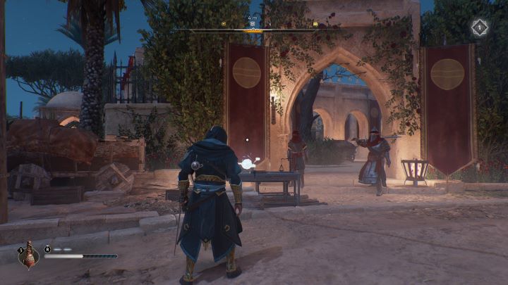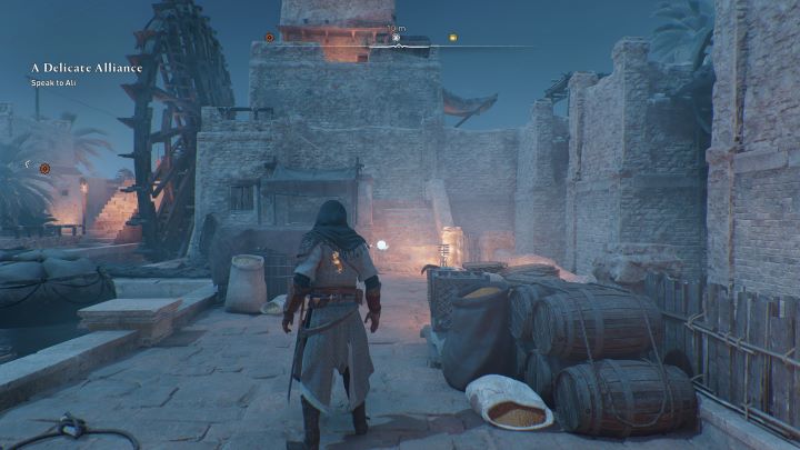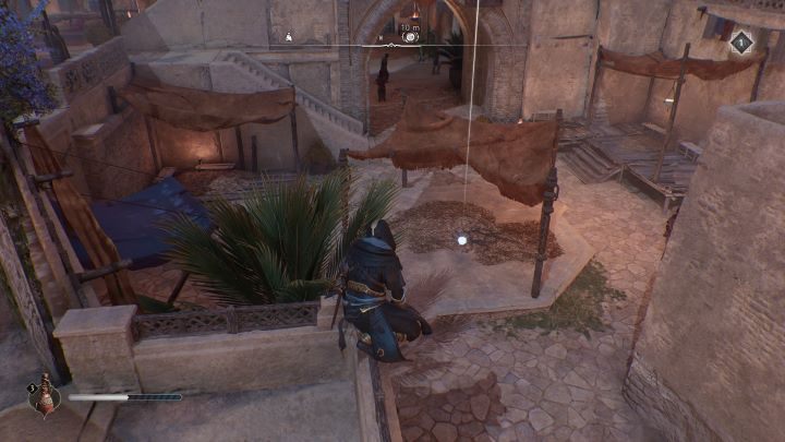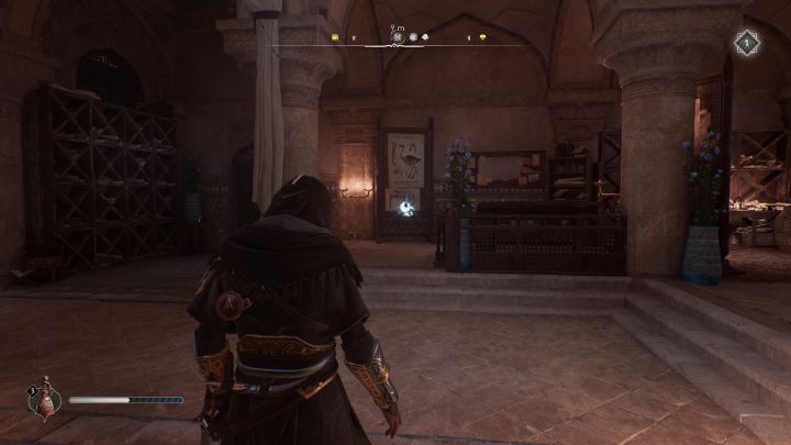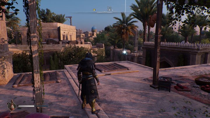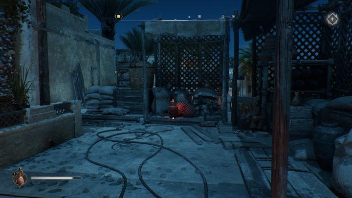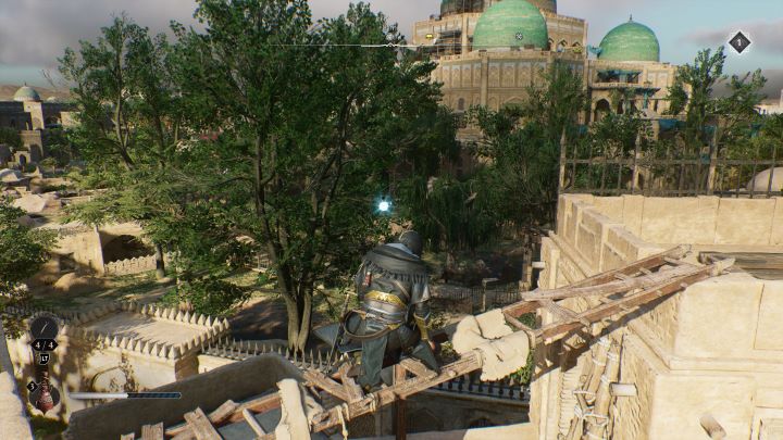 - Historical Site #6 - Al-Jahiz - located in the Residential District, in the Al-Jahiz's House, under a weakened roof, next to a gear chest. Pick up the explosive vase on the lower roof and throw it at the stones on the higher roof.