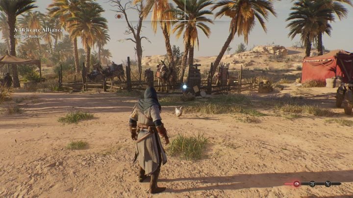- Historical Site #5 - Caravanserai - located in front of the entrance gate of the Caravanserai, west of the Water Mill. Be careful - the guards at the gate are hostile, so getting this collectible is likely to result in a fight or escape.