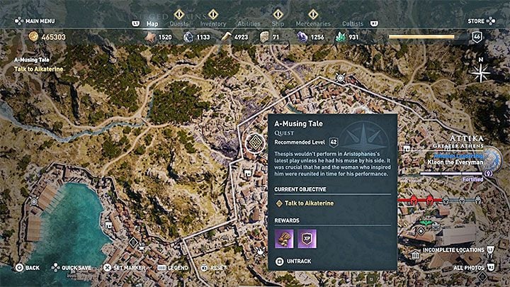 The meeting with Aikaterine takes place during the main quests in the eighth chapter (episode) of the game. We have on mind the quests that you complete during your stay in Athens. You have to get an A-Musing Tale quest from Thespis to meet Aikaterine. The woman resides in the northwestern part of Athens in the House of Aphrodite.