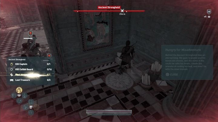 Location of Ainigmata Ostraka: Head for the Ancient Stronghold. The item will be to the right of the entrance, right under the painting.