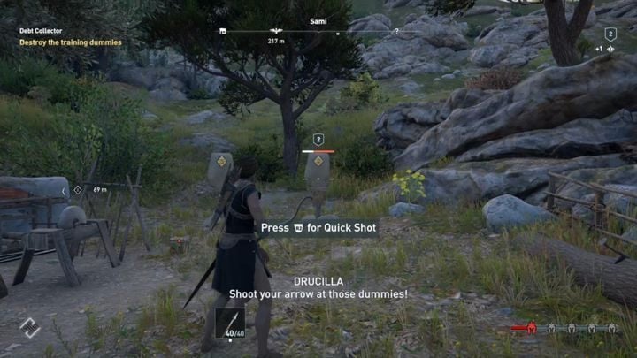 Go to Marcos and inform him of what you've done. Then, follow Drucilla to her workshop, where you should unlock the ability to use the bow. Test the new weapon by shooting targets - the mission will end successfully. Reward: +825 XP.