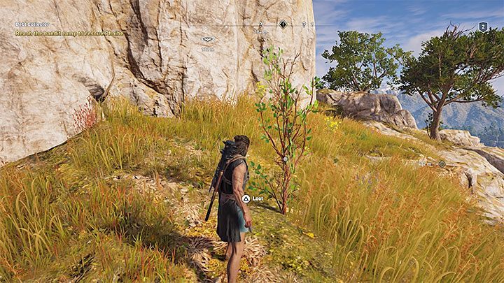 The mine itself and the adjacent camp (Lavrio Silver Mine) are guarded by enemies. However, if you manage to deal with them, you can find plenty of deposits inside the mine. In particular, look for deposits marked in blue (example is shown in the picture) and violet. By looting the mine you can get a lot of iron, obsidian glass and precious jewels. You should also consider returning to it later in the game, cause the deposits should be renewed.