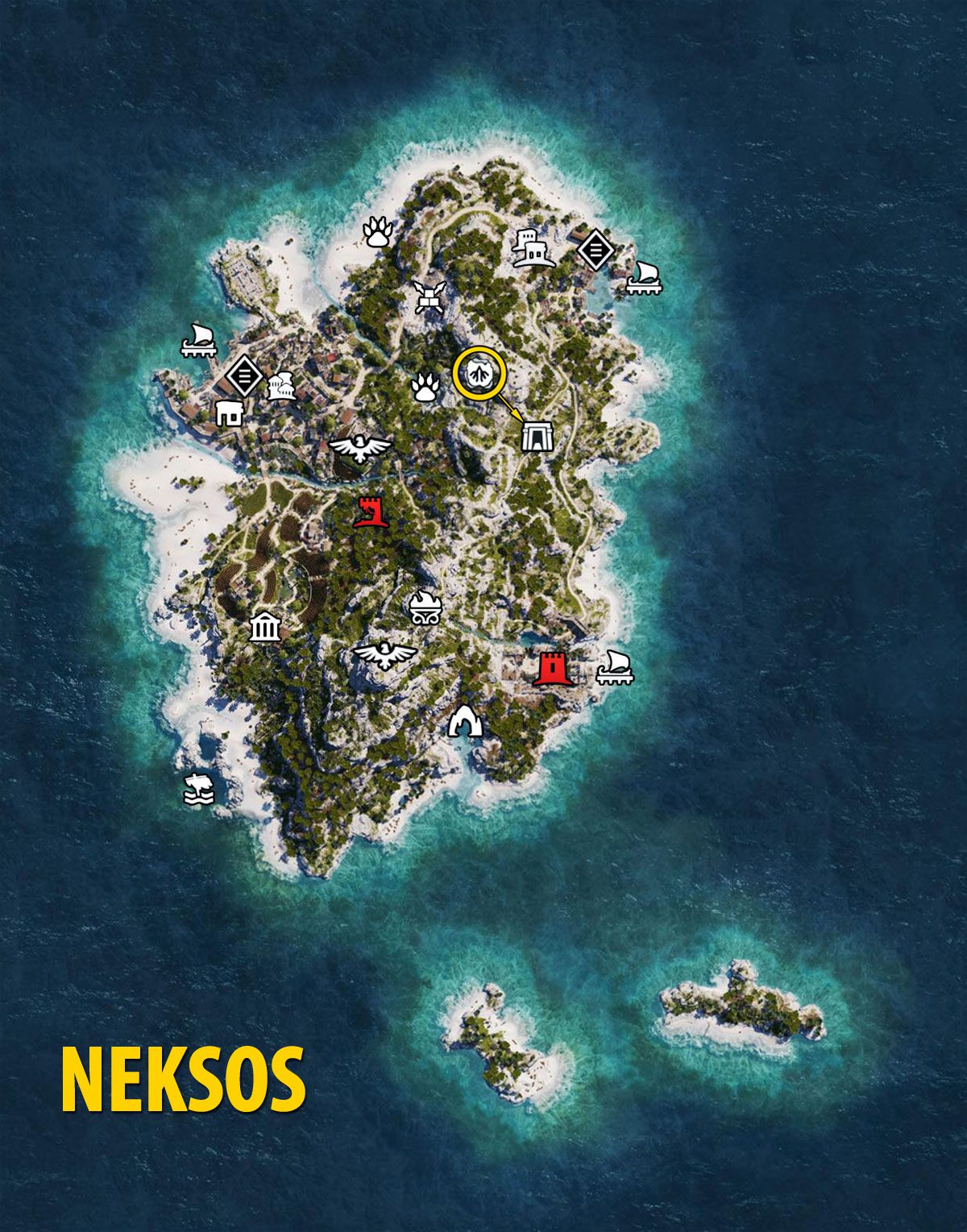 On this page of Assassin's Creed Odyssey game guide we have uploaded a map of Naxos. This is one of the small islands available in the game. The map shows all the locations in the area that can be visited.