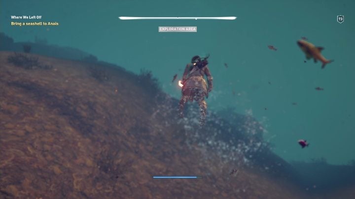 After reaching the beach, you will get a new objective. You have to jump into the water and collect shells for your beloved.