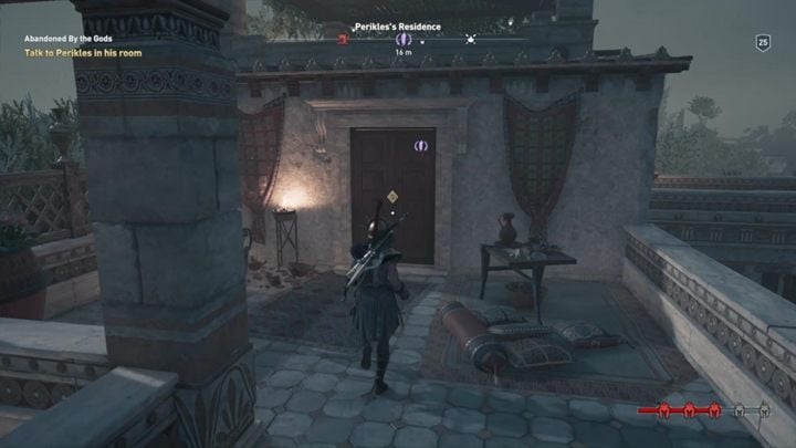 Escort the man to the balcony and talk about the situation in the city. Then go down, to the place where Aspasia is waiting, and talk to her to finish the quest and get +10000 XP