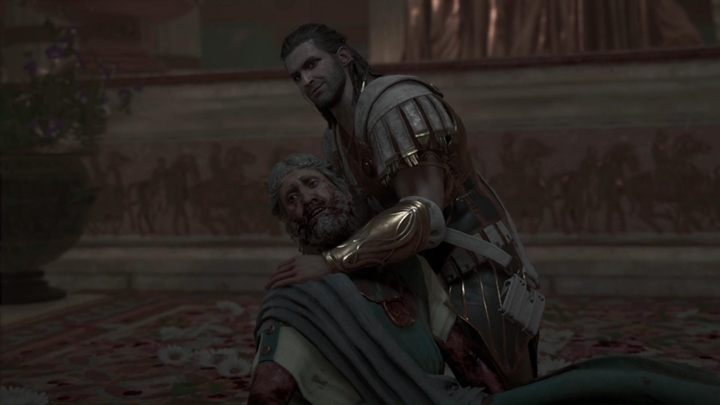 Run to Aspasia and tell her about all that. You will see Deimos after the scene; he's the one who kills Pericles. Kill the cultists, approach the corpse.