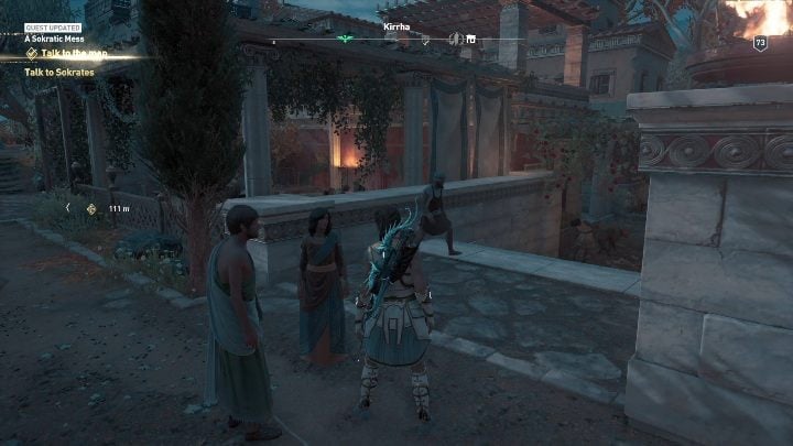 Your first task is to follow Socrates' wife. Keep an eye on her, because the mission can turn off.