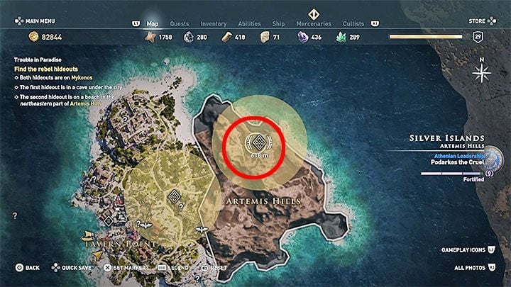 The Silver Islands archipelago is located east of Attika and the Keos Island. This archipelago includes the islands of Delos and Mykonos. For a meeting with Thaletas, you must take a boat to Mykonos Island. After you have done so, reach the marker on the island's shore. This will include another conversation with Barnabas.