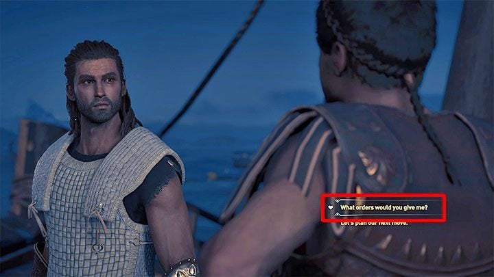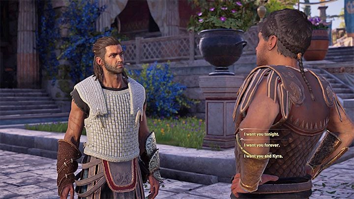 Note - Do not try to choose the last dialogue option from the list (a potential love triangle with Thaletas and Kyra), because the Spartan will not like this idea.