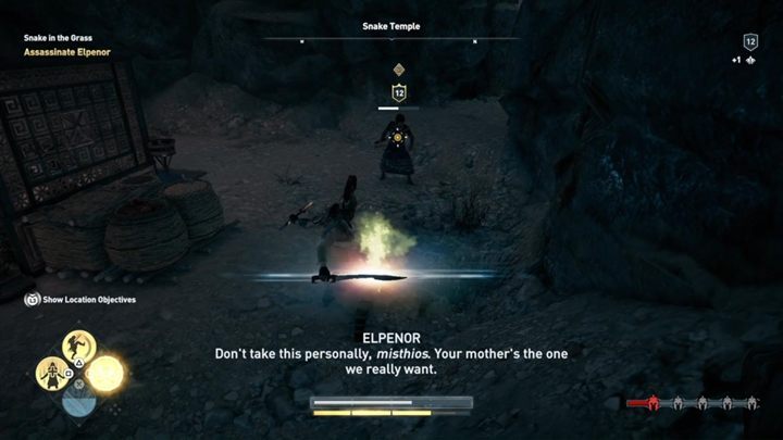 - Description: You will find the man in the Argolis, near the center. Complete "Snake in the Grass" to learn his location. Kill him from a range and use your bow to do it.