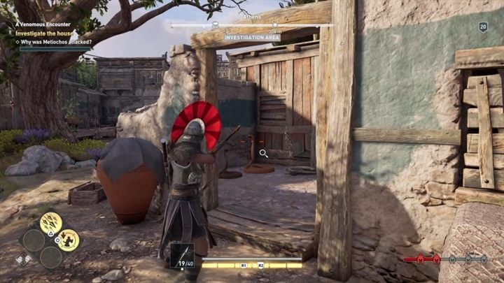 Go to the indicated house. It will turn out to be full of snakes - use your bow to eliminate the threat and free Metiochos Now go to the house of the attackers - there, you also have to kill the snakes. After you eliminate them, search the area. Examine vipers' corpses, the dead body hidden behind the tree, and the letter on the top floor of the building.