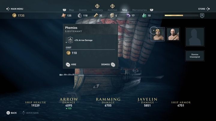 You are now a ship's captain. From now on the game's world becomes more open. Spend a moment to learn the controls. Then, you must head to the ship with Barnabas' cargo. Time for your first naval battle - use arrows and spears to deal damage to your enemy and then destroy them by ramming your ship into theirs.