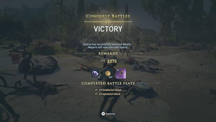 The battle ends when the bar representing Athenian army goes down to zero. Rewards: 3,375 XP, resources and one epic item.