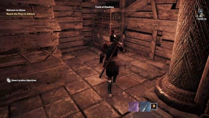 Walkthrough: Enter the tomb and continue forward. Smash the wall. Continue downward along the corridor and then turn left.