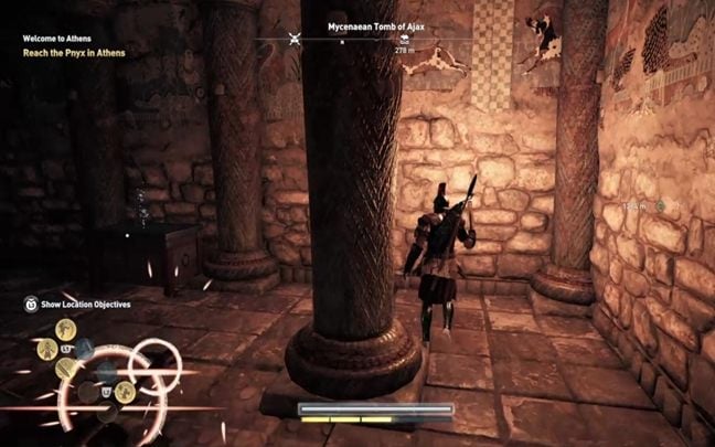Walkthrough: Enter the tomb, continue forward, and smash the wall. Continue along the corridor and watch out for traps and snakes.