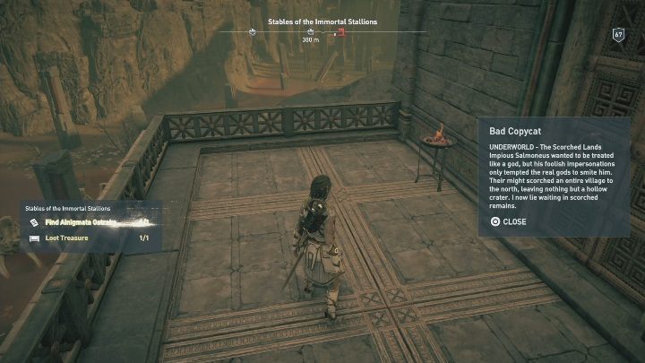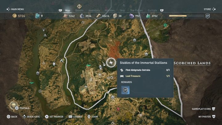 Location of Ainigmata Ostraka: The first element of the ostraka is in the Stables of the Immortal Stallions. It is located on the balcony, in the northern part of the building.