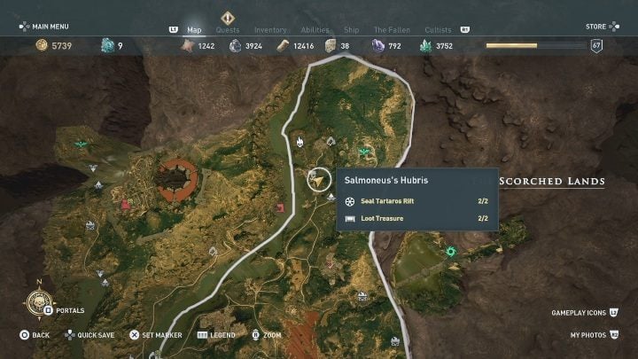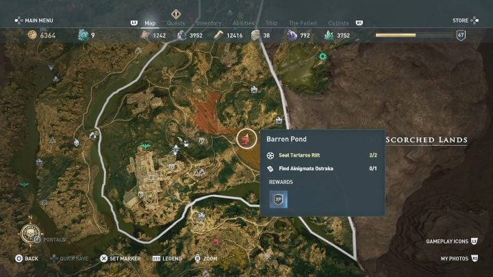 Location of Ainigmata Ostraka: The first element of the ostraka is in the location called Echoes of the Styx. It is located over a cliff near red rocks.