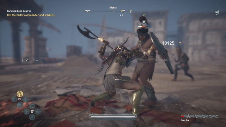 Your next objective is to go to the place where guards are planning on killing a woman. Defend her.