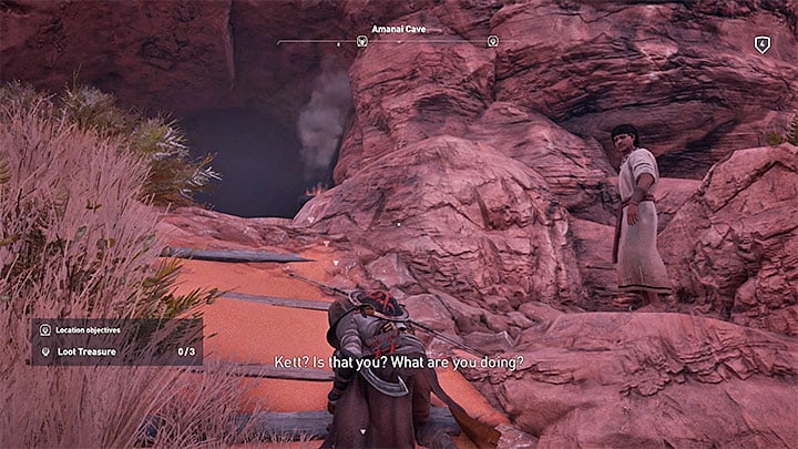 Kett (presented in the picture) stands near the entrance to Amanai Cave. He tells you about bandits that took over a spring. You must kill all bandits that are in the cave (they are at level 2-3). You can kill them stealthy (preferably during a night with your bow or by using stealth attacks) or in an open conflict (try to attack them one after another). Besides that, you can also do something extra and search 3 treasure chests that are hidden somewhere in the cave.