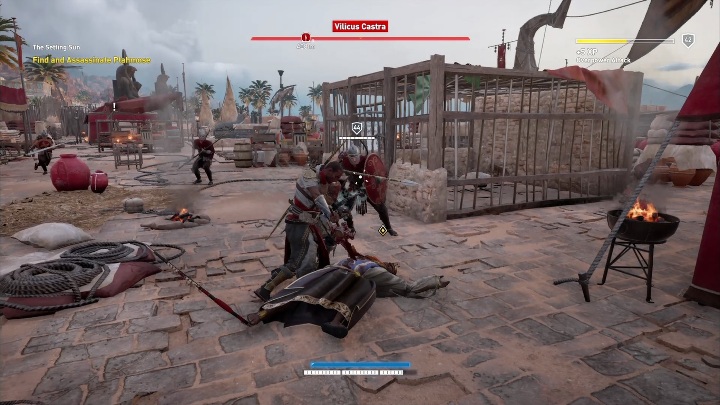 Jump to the other side with your friend. You will leave the cave. There will be some soldiers at the entrance. Kill them all. After you do that, talk to Gamliat. He will order you to kill Ptahmose. You can find that man in Vilicus Castra. This will be the conclusion