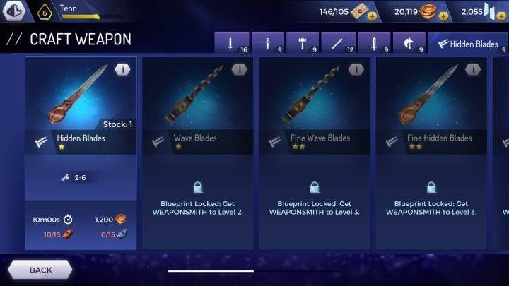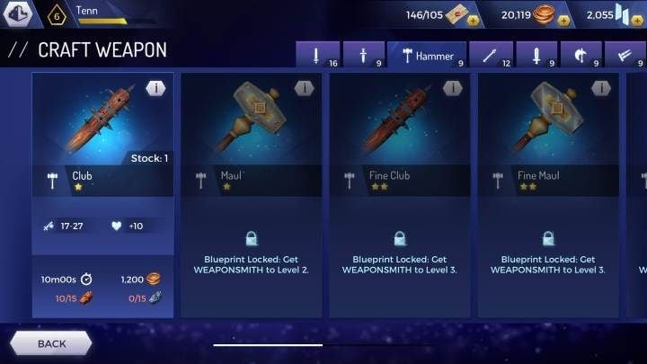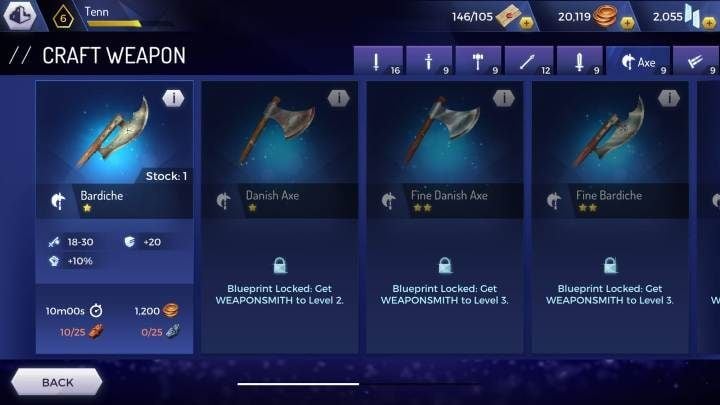 Then you can choose the weapon you are interested in and the character who will create it. After a few minutes your new weapon will be available.
