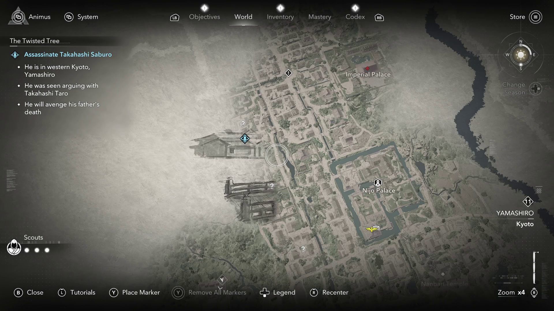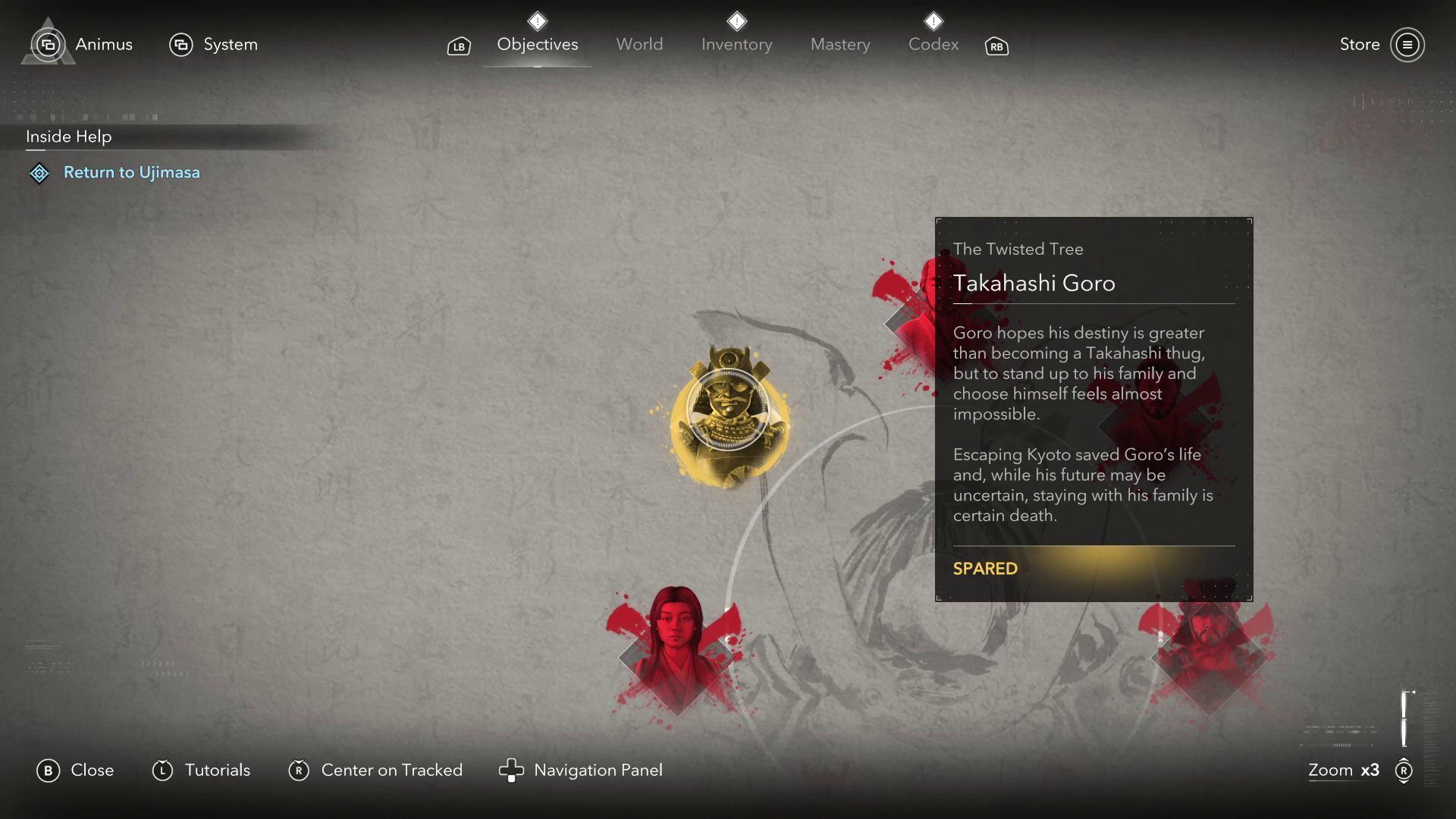 Start the Inside Help mission and talk to the monk Ujimasa. You will find him in the Kiyomizudera temple, east of Kyoto. After the conversation, The Twisted Tree mission will appear on the quests list. To continue the Fool's thread, you must complete the entire targets tree consisting of the Takahashi family.