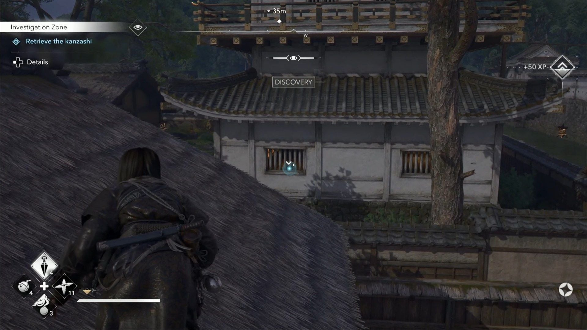 Both characters can mark enemies and focus on observing the surroundings by holding the left trigger on the controller (interestingly, this is a completely separate mechanic from the iconic eagle vision, which only Naoe has access to). However, an even more useful use of this skill is discovering important items and mission objectives. They are marked with dots of different colors - loot and keys are gold, collectibles and side objectives are white, and mission objectives/targets are blue. So if you're looking for clues to complete a location or searching for a mission target in a larger area, use the enemy marking mechanics, and the game will show you where to find your target.