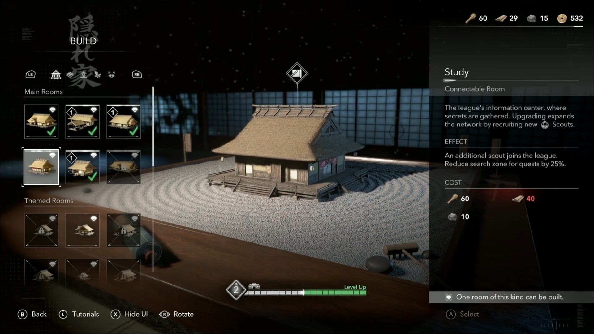 Kakuregi are tiny hideouts located in cities and settlements. Buying a kakurega costs 800 mon, which you can do directly on the map. They are worth the money - kakuregi serve as fast travel points, you can buy scouts in them, replenish rations, tools and ammunition for free, store items in the stash and accept contracts - randomly generated missions rewarding you with money and experience. So they are very useful buildings, where you can easily prepare for the next task.